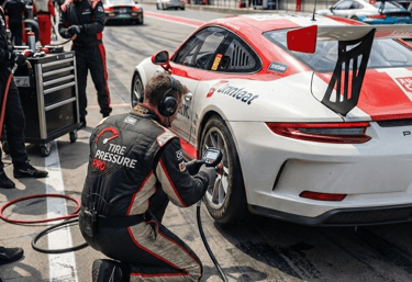 At Sanders Motorsport, race day begins long before the green flag ever waves. Our team handles full car preparation from top to bottom mechanical setup, safety checks, systems verification, and all the fine details that ensure the car rolls onto pit lane ready to perform. We manage transportation, logistics, and paddock setup so everything is exactly where it needs to be. Once the weekend begins, our engineering group takes over with data analysis, tire strategy, fuel planning, and real‑time adjustments that keep the car competitive in every session.